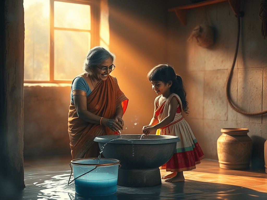 Another memory rises: being at the farms with Nani ji, where water was in short supply. She gave us half a bucket for this chore, half for that. A separate container held water for the flush, recycled from utensils just washed. My brother and I adapted to it beautifully. We never complained. The logic of it made sense: the supply is limited, so you use it judiciously. No lectures were needed. Just the rhythm of scarcity shaping sensibility.